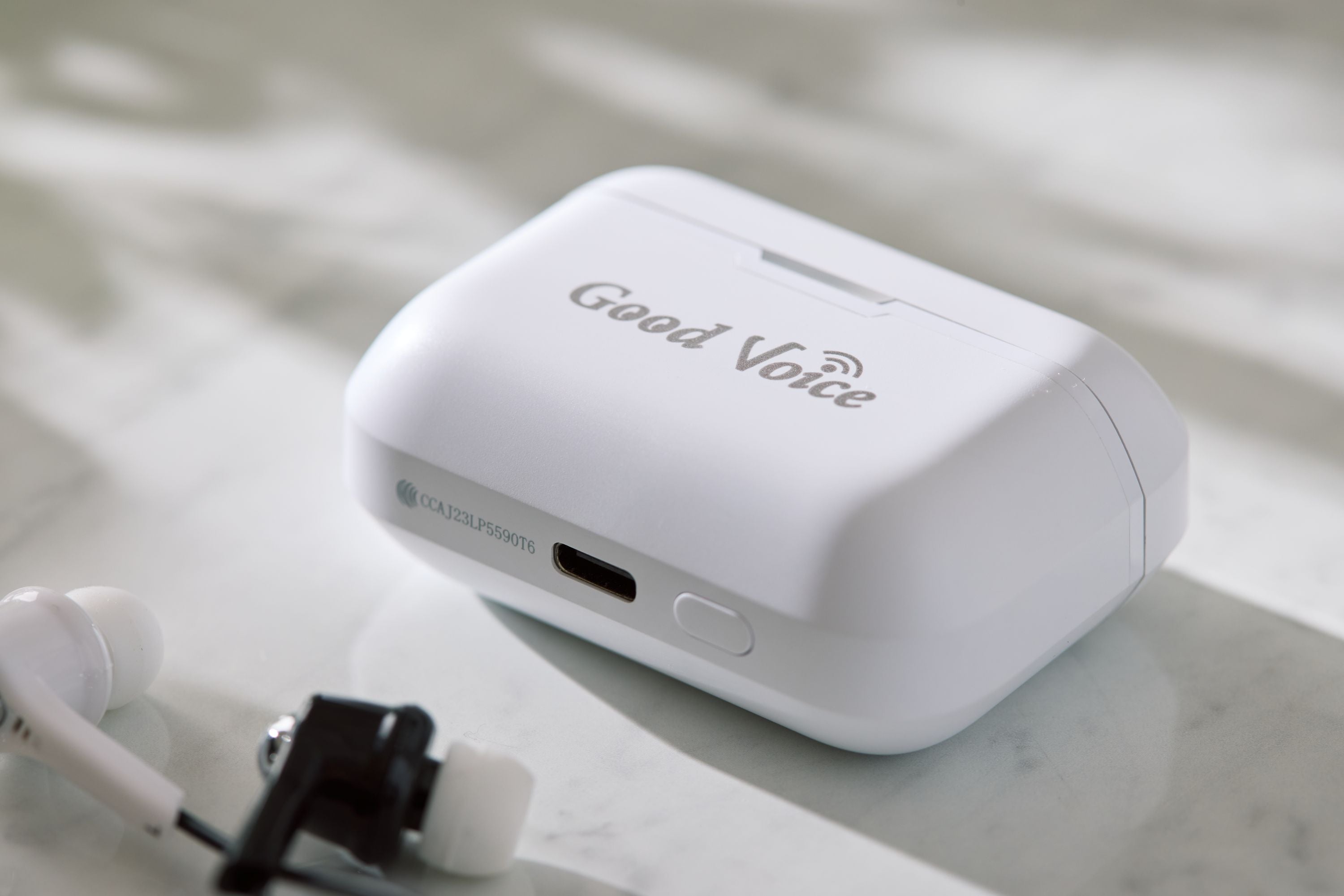 Good Voice hearing devices come with a specially selected wired earphone for backup use when the wireless earphones run out of battery.